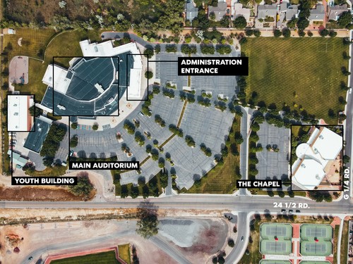 During the week our administration office is open between 9am and 5pm on Mon-Thurs and is located on the sotheast side of the main building, (far right if looking at the building from the parking lot). Fellowship Hall & Kitchen, Training Rooms and the Prayer Room are also located on this side of the campus.